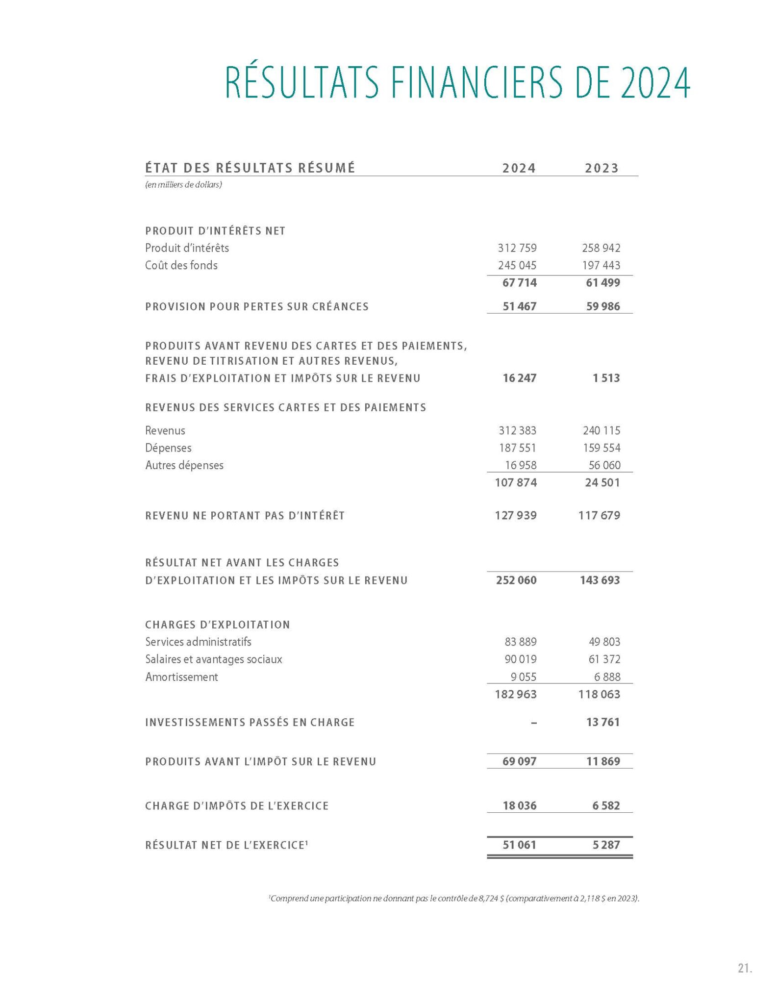 Résultats financiers